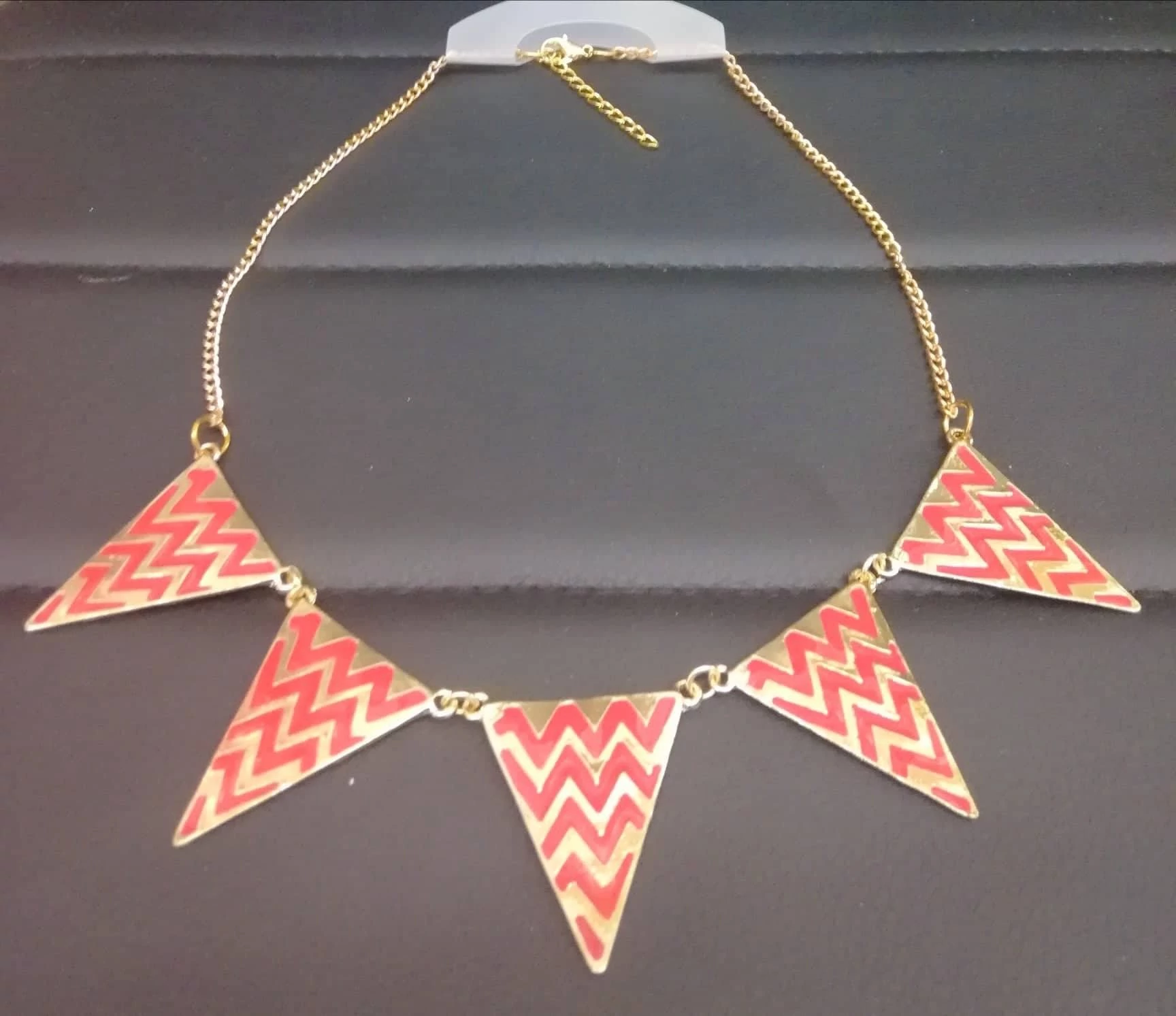 Nyaklánc (háromszög-füzér), arany-piros színben